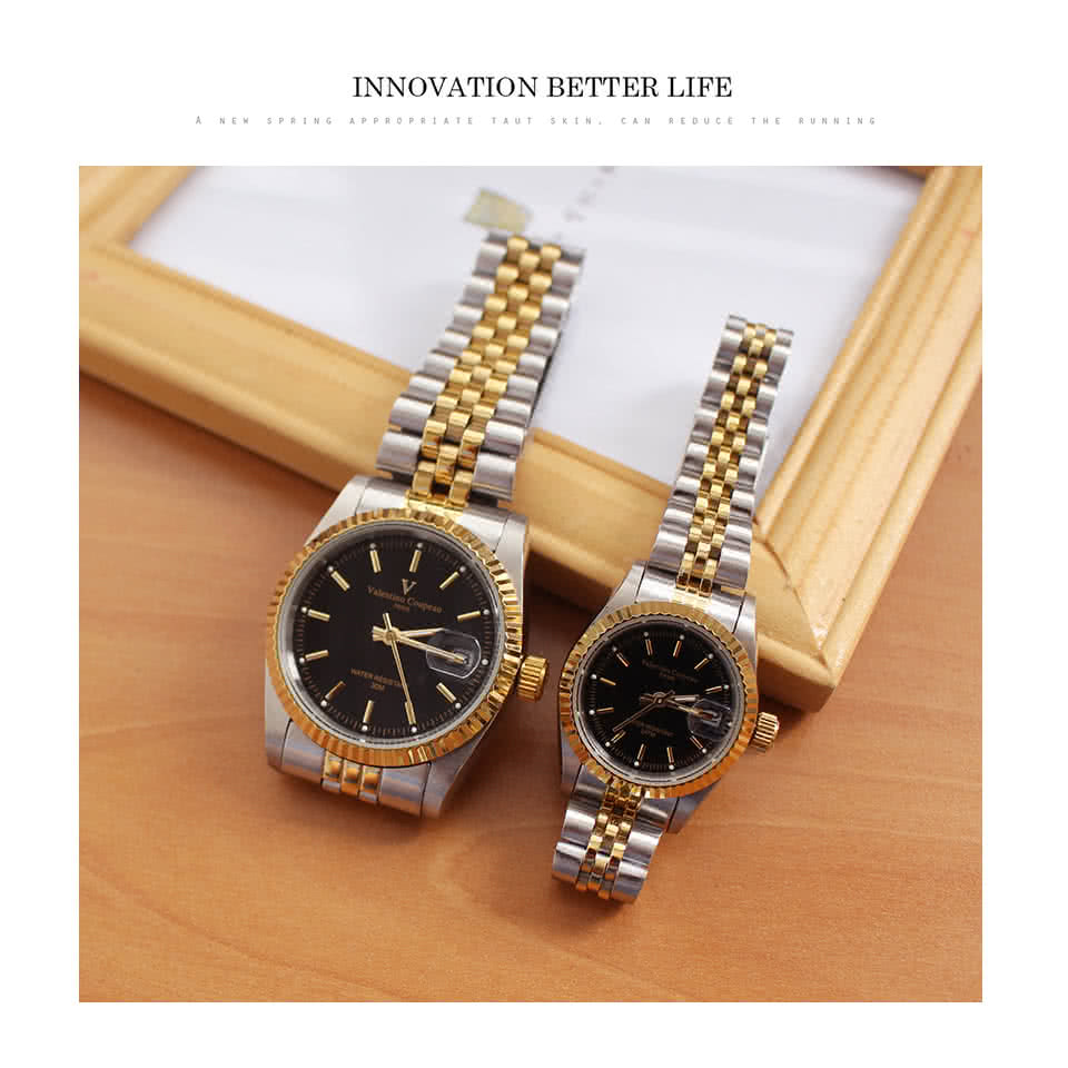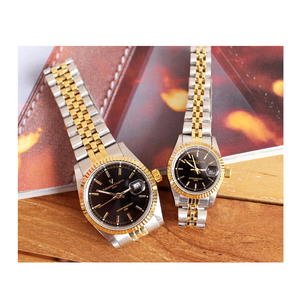 這個家電品牌子好【Valentino Coupeau】范倫鐵諾 古柏 刻紋黑面指針金銀不鏽鋼殼帶防水手錶(兩款)你不能錯過