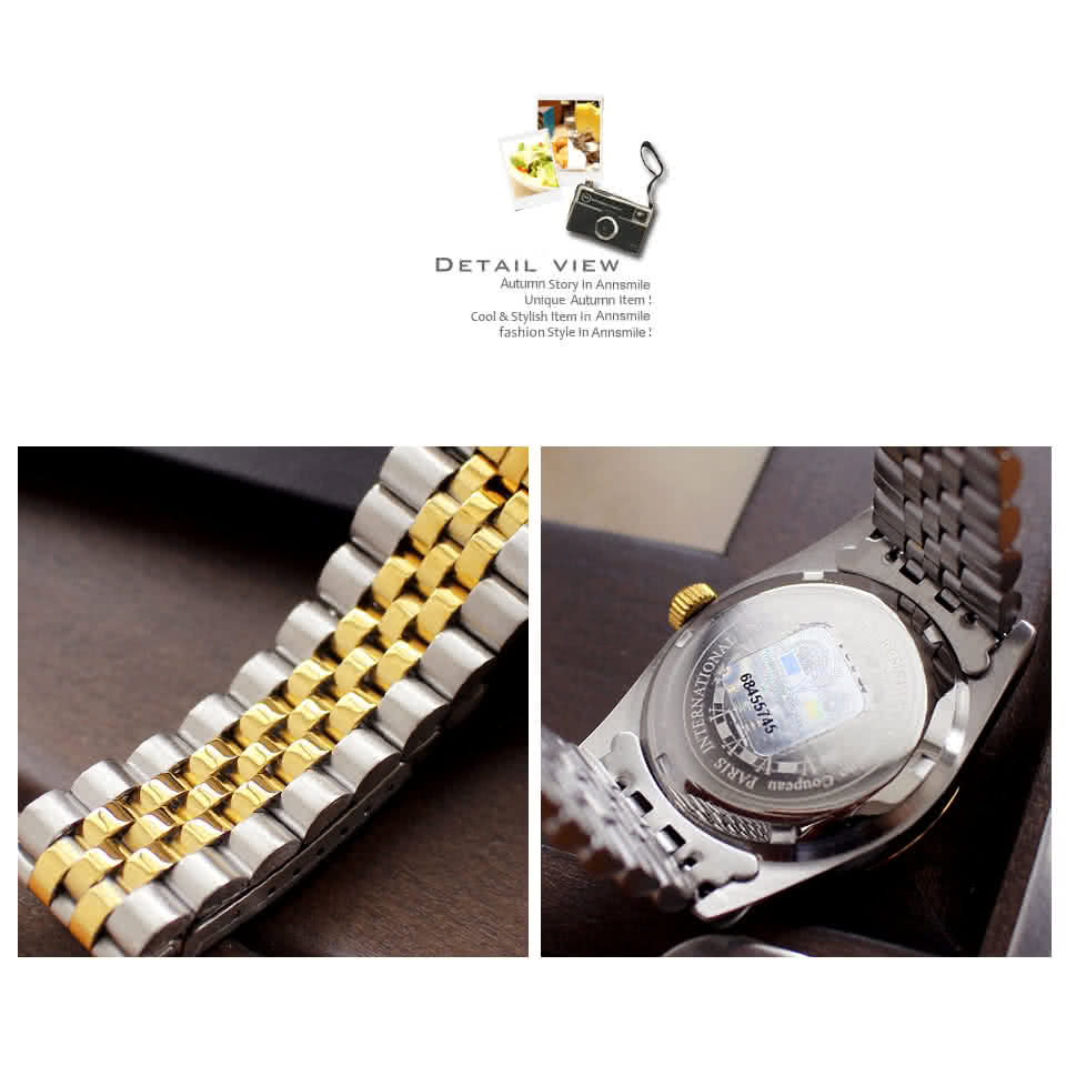 材質:A+不鏽鋼殼帶+金鋼鍍膜鏡片+內外雙防水錶冠
